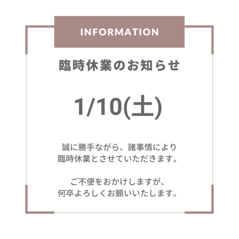 誠に勝手ながら、諸事情により1/10(土)は臨時休業とさせていただきます。